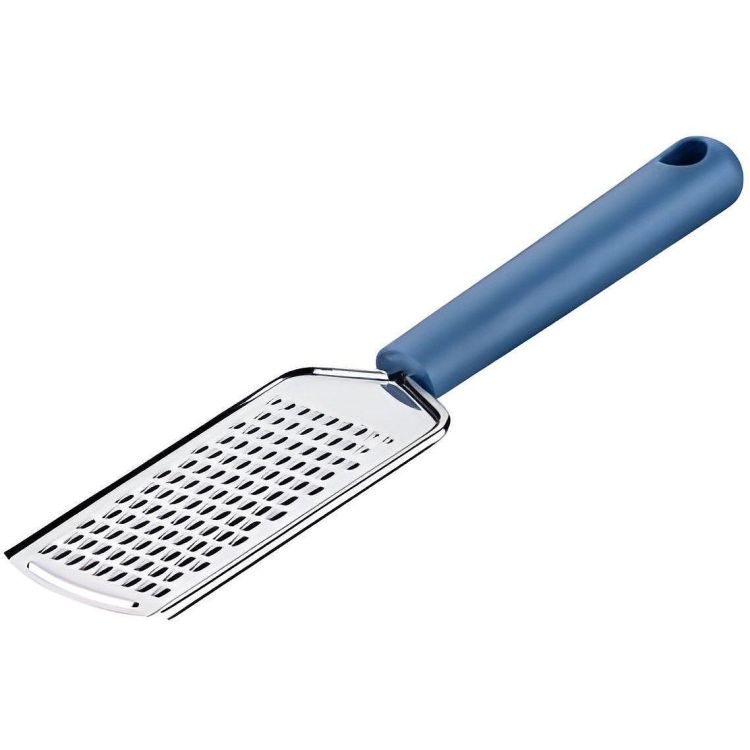 Ренде, Essential, острие: неръждаема стомана - 18/0 / AISI 430 (сребрист), дръжка: PP (тъмносин), 235 x 59 x 20 мм, 52 г, край на дръжката с практичен отвор за закачане, идеално за настъргване на зеленчуци, сирене, шоколад и др., подходящо за съдомиялна машина