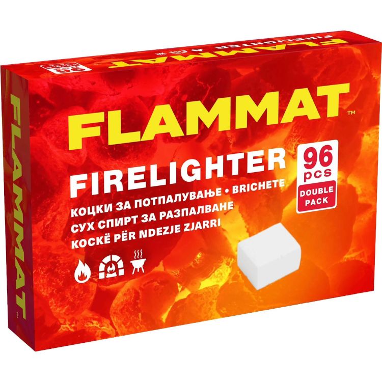 Flammat White Firelighter е водещ продукт в тази категория в Европа. Кубчетата се запалват лесно, горят дълго с интензивна топлина, осигурявайки безопасно и ефективно използване, и не оставят остатъци след изгаряне. Мощната формула гарантира сигурно запалване всеки път. Продуктът е под формата на плочи с 48 предварително нарязани кубчета – просто отчупете необходимия брой и ги поставете върху тънък слой гориво.
