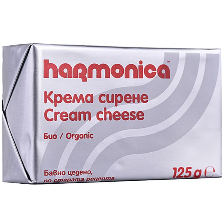 Harmonica био крема сирене е произведено от био краве мляко и био сметана със закваска и сол. Подходящо за директна консумация, за намазване върху хляб или като съставка в различни рецепти. Отличава се с кремообразна текстура и плътен млечен вкус.