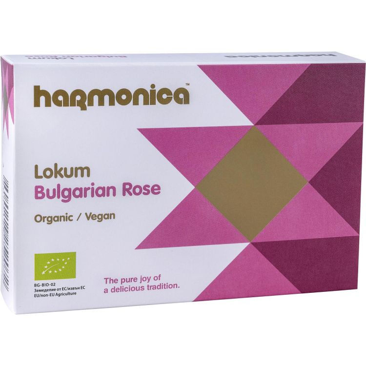 Локумът Роза Хармоника ще Ви предложи истинска наслада за гърлото (така се превежда от турски „рахат локум“). Рецептата ни е максимално изчистена – без добавени ароматизанти и оцветители, каквато е масовата практика на пазара, с чисти био съставки. И, разбира се – по класическата технология – със захар, а не с глюкозен сироп. Вместо изкуствен аромат на роза, който да ви удари в носа, сме добавили воден екстракт от цвят на био маслодайна българска роза – за автентичен български вкус.