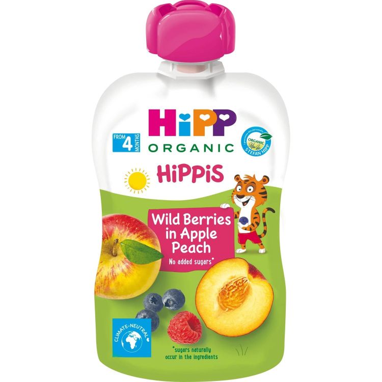Hipp био пауч горски плодове, ябълка и праскова, 100 г