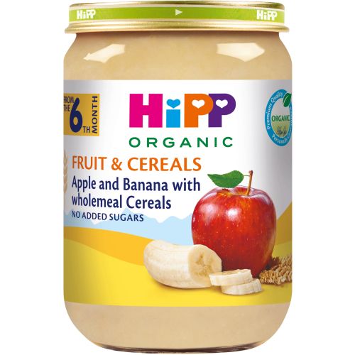 Hipp био пълнозърнеста каша с ябълки и банани, 190 г