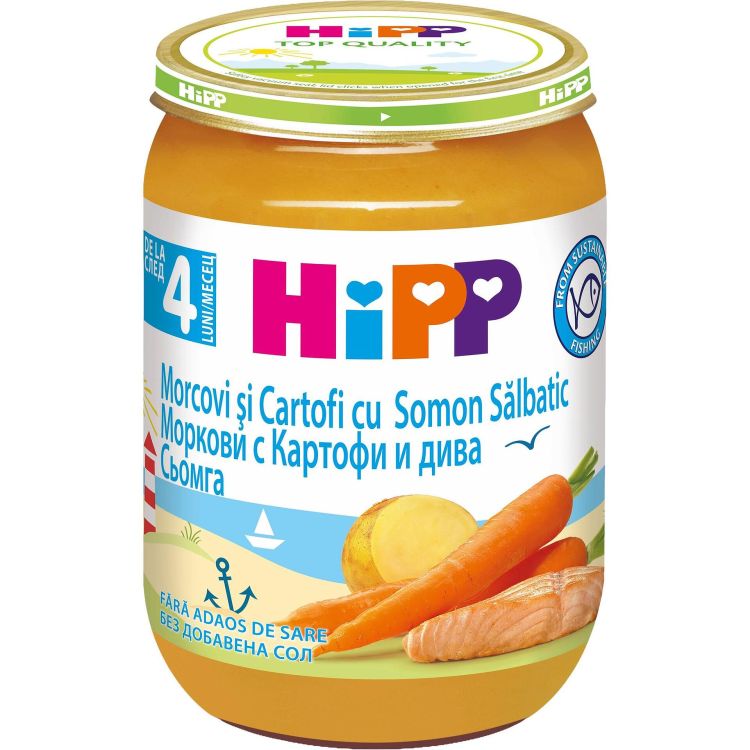 Hipp био пюре моркови с картофи и дива сьомга (190 г)