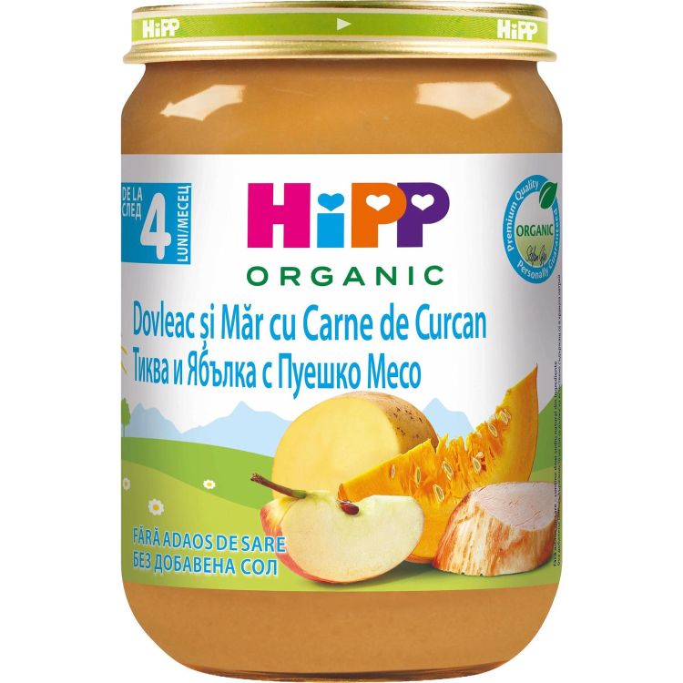 Hipp био пюре тиква с пуйка и ябълка, 190 г