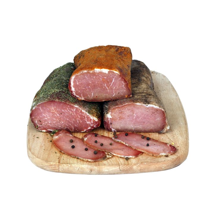 Състав: свинско контрафиле (Произход: ЕС), консервираща сол (сол, консервант: натриев нитрит, калиев йодат), захар, хвойна, СИНАПЕНОсеме, черен пипер, поръска от 2% натрошено чили, глюконо-делта лактон, киселина: винена , лимонена, ЛАКТОЗА, антиоксидант: аскорбиновакиселина, дектроза, подправки