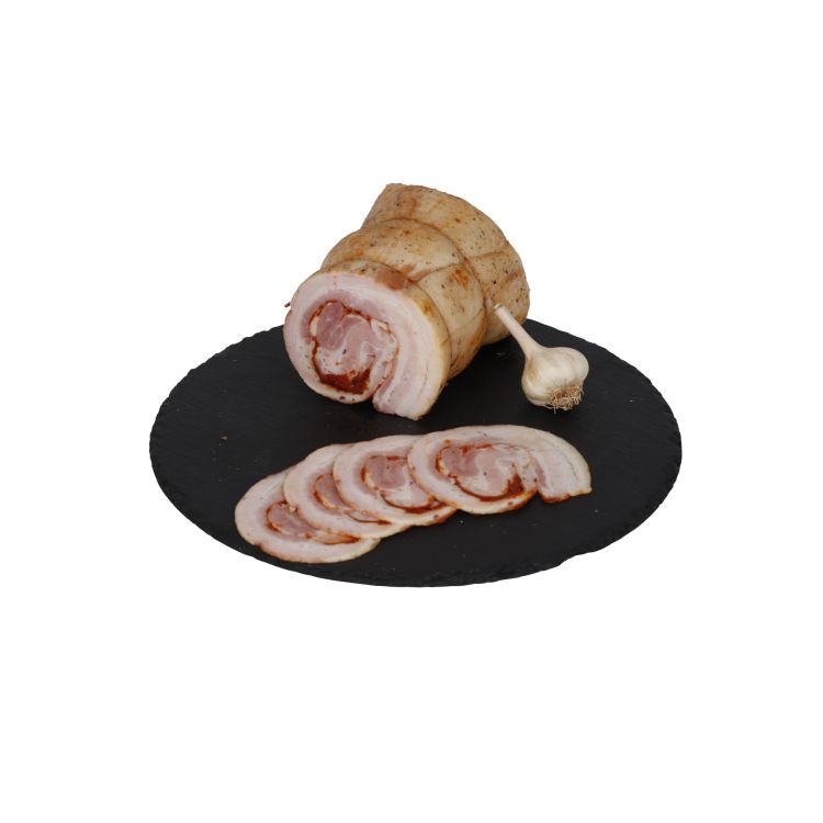 Състав: свински гърди (Произход: ЕС), вода, консервираща сол (сол, консервант: натриев нитрит, калиев йодат, антислепващ агент: Е535), стабилизатор: дифосфати, емулгатор: карагенан, малтодекстрин, декстроза, сол, хидролизиран растителен протеин, антиоксидант: натриев аскорбат, пушилен ароматизант;