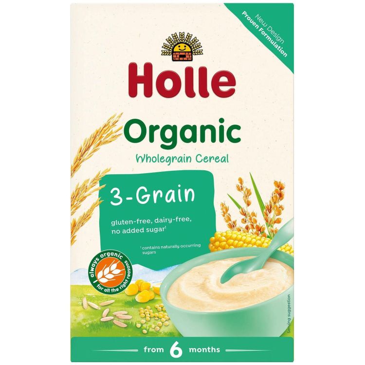 Holle Био каша 3 зърна е сертифициран органичен продукт, предназначен за бебета от 6 месечна възраст, специално създаден да осигури здравословна и балансираща храна за щастливи деца. Всички продукти от Холе са произведени от биологично отгледани суровини, без генно модифицирани съставки, без добавена захар или хидрогенирани мазнини. Holle предлага първокласна висококачествена храна без съдържанието на изкуствени аромати, оцветители или консерванти.