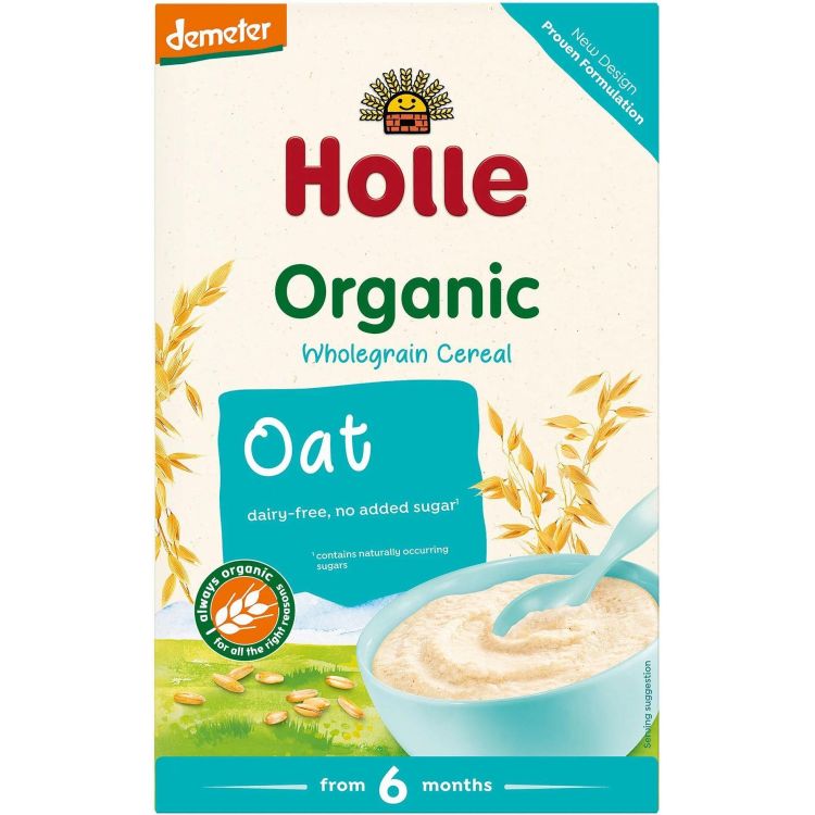 Holle Bio бебешка овесена каша е предназначена за деца от 6 месечна възраст, която се приготвя изключително лесно и без добавена захар и сол. Подходяща и пригоденa за бебета, която е лесно смилаема и изключително богата на хранителни вещества. Съдържа високо ниво протеини и мазнини, както и витамините А, В1, В2, В6, С, Е, К, както и минерали - силиций, калций, желязо, калий и фосфор от всички зърнени сортове.