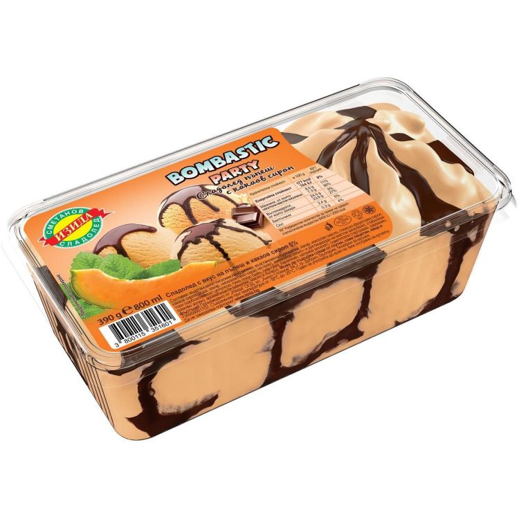 Изида Bombastic Party сладолед пъпеш с какаов сироп, 390 г (800 мл)