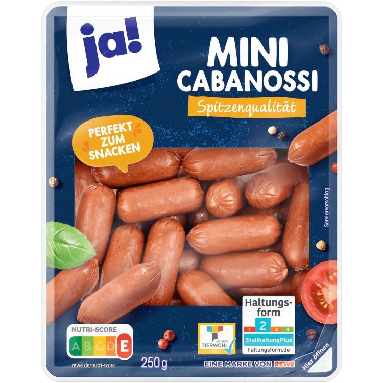 Съставки: свинско месо*, бекон*, нитритно-печено сол (сол, консервант (натриев нитрит)), подправки, декстроза, стабилизатор (натриев цитрат), малтодекстрин, антиоксиданти (аскорбинова киселина, натриев аскорбат), дим. *QS стока. 100 г мини кабаноси се произвеждат от 112 г свинско месо.