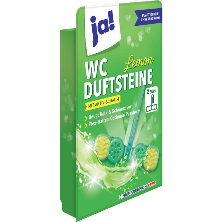 Ja! WC Duftsteine Lemon е практичен ароматизатор за тоалетна с освежаващ аромат на лимон. Осигурява чистота и свежест при всяко пускане на водата, като поддържа тоалетната чиния хигиенично чиста и приятно ароматизирана.