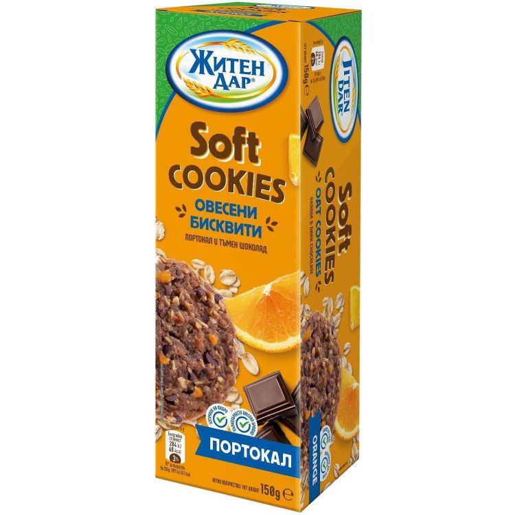 Житен дар Soft Cookies меки овесени бисквити портокал и тъмен шоколад (150 г)