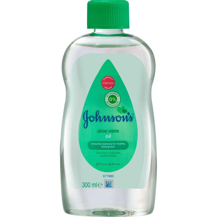 Бебешкото олио с алое вера на Johnson’s е създадено, за да подхранва и хидратира нежната бебешка кожа. То задържа до десет пъти повече влага върху влажна кожа и спомага за успокояване и предпазване от изсушаване. Формулата е хипоалергенна, с балансирано pH, без оцветители, парабени, фталати и алкохол. Подходящо е за ежедневна употреба върху тялото.