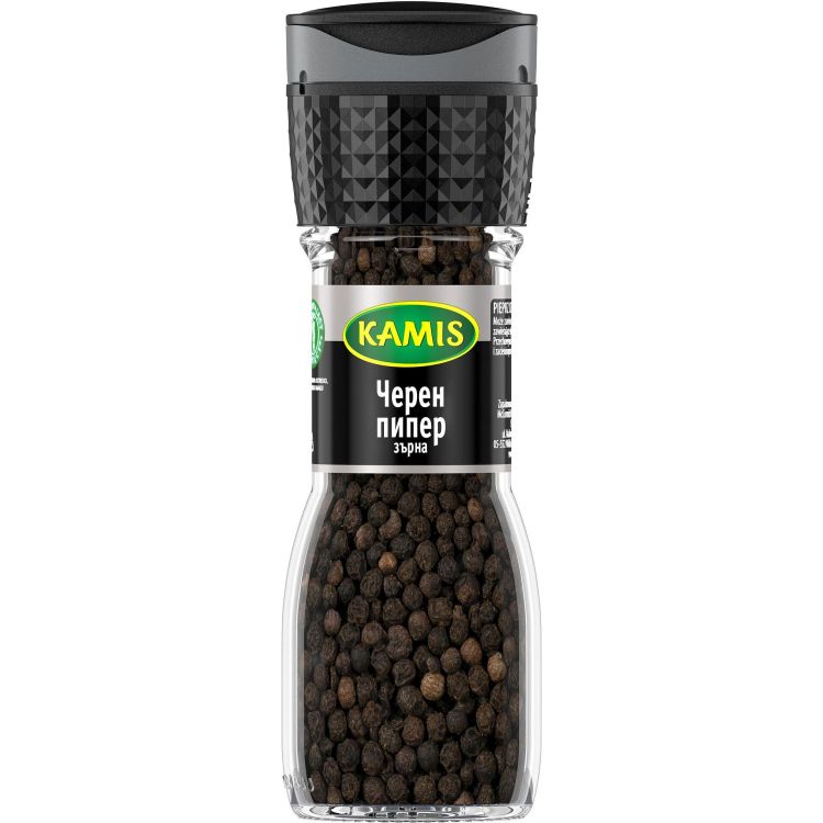 Съставки: черен пипер зърна. Може да съдържа следи от пшенично брашно, целина, мляко и яйца.