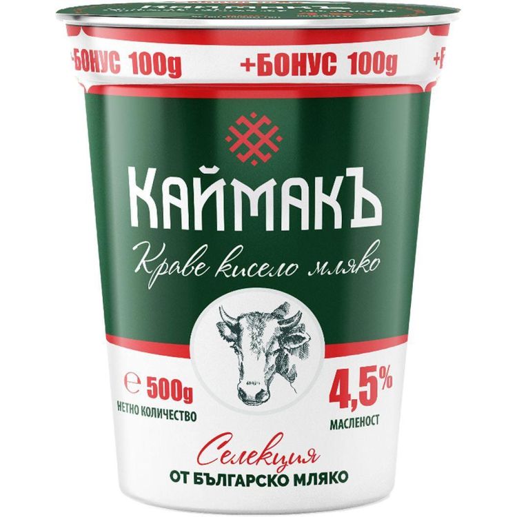 Описание: Емблематичният продукт в линията КаймакЪ – кисело мляко с масленост 4.5%, създадено от най-висококачествено краве мляко и българска закваска. Отличава се с неповторим кремообразен характер и великолепна текстура. Подходящо за всяко хранене – от закуска до вечеря, когато искате да се поглезите с истински вкус и качество.