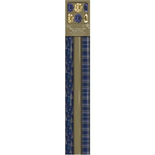 Коледен комплект за опаковане - три вида хартия и панделки (1 бр.)