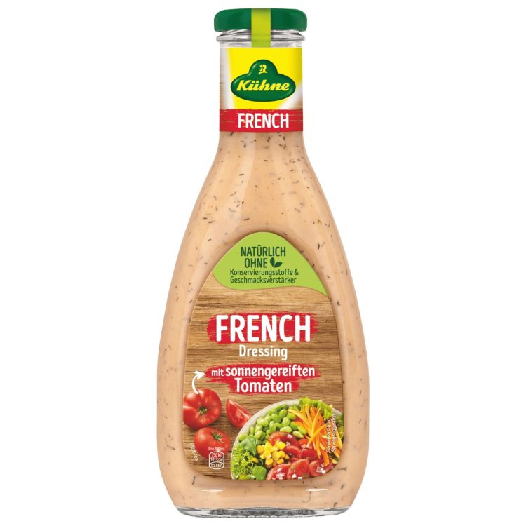 Състав: Вода, рапично масло, глюкозно-фруктозен сироп, оцет, доматено пюре (4,5%), доматени кубчета (3%), захар, модифицирано нишесте, лук, сол, суроватъчен продукт, билки, синапени семена, подправки, концентрат от лимонов сок, сгъстител ксантанова смола, естествен аромат
