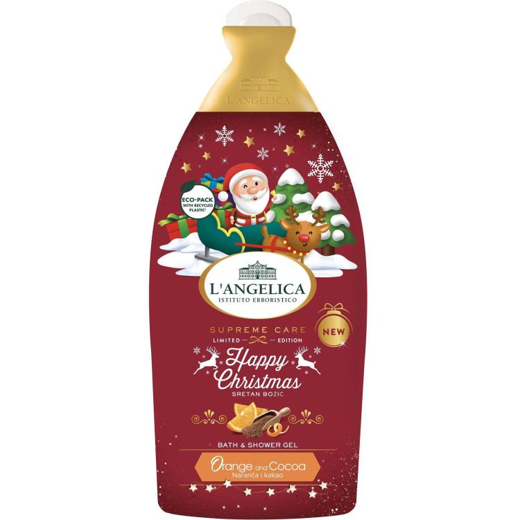 Описание: Потопете се в коледната магия с лимитираната серия душ гелове L'Angelica Officinalis. Обгърнете тялото си с нежна, ароматна пяна с интензивен аромат на прясно какао и свеж портокал. Формулата с натурални съставки осигурява нежно измиване и дълготрайна хидратация, като прави кожата копринено мека и еластична. Без парабени, силикон, парафин и ГМО.