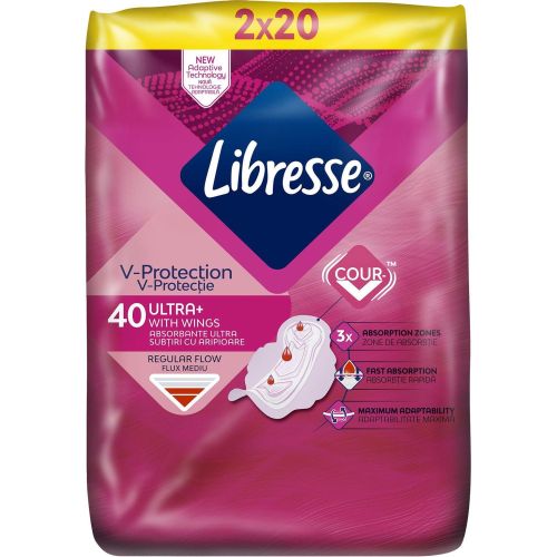 Libresse V-Protection Ultra+ дамски превръзки с крилца, 40 бр.