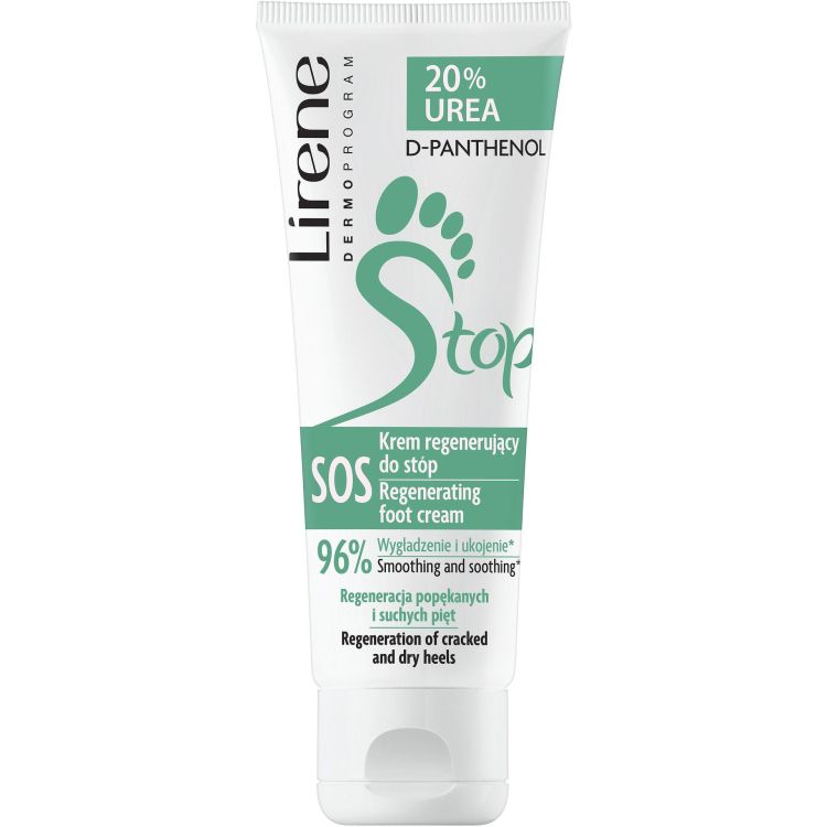 Възстановяващият крем за крака Lirene SOS с 20% уреа интензивно овлажнява, изглажда и подпомага регенерацията на много суха и раздразнена кожа. Идеален е за ежедневна грижа за стъпала, склонни към загрубяване и напукване.