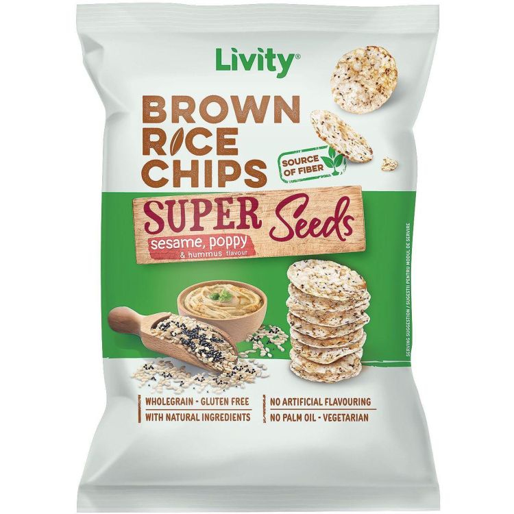 Livity оризов чипс супер семена сусам, мак и хумус (60 г)