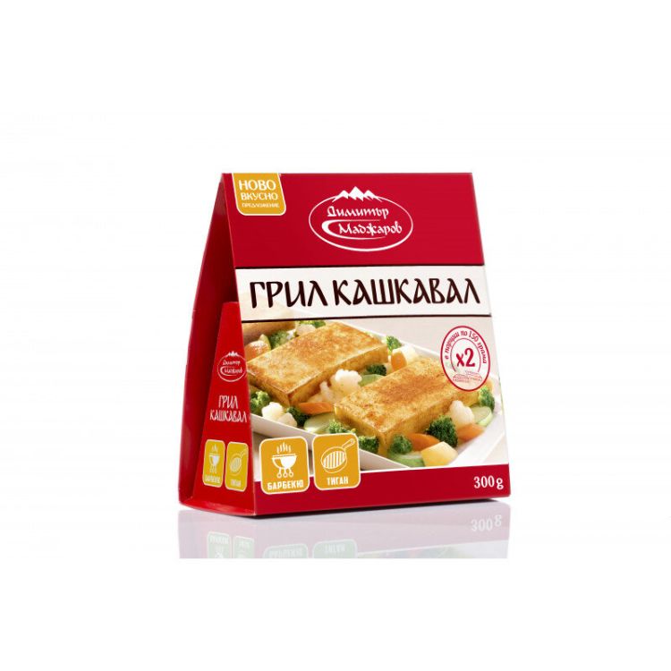 Грил кашкавал за печене Маджаров – произведен от 100% краве мляко по традиционна рецепта. Идеален за приготвяне на скара, тиган или фурна. Кашкавалът не се разтича при печене, запазва своята форма и развива апетитна златиста коричка с богат вкус и аромат.