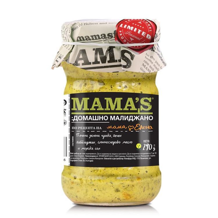 Съставки: печена зелена чушка 80%, слънчогледово масло 13%, печен патладжан 5%, морска сол 2%.