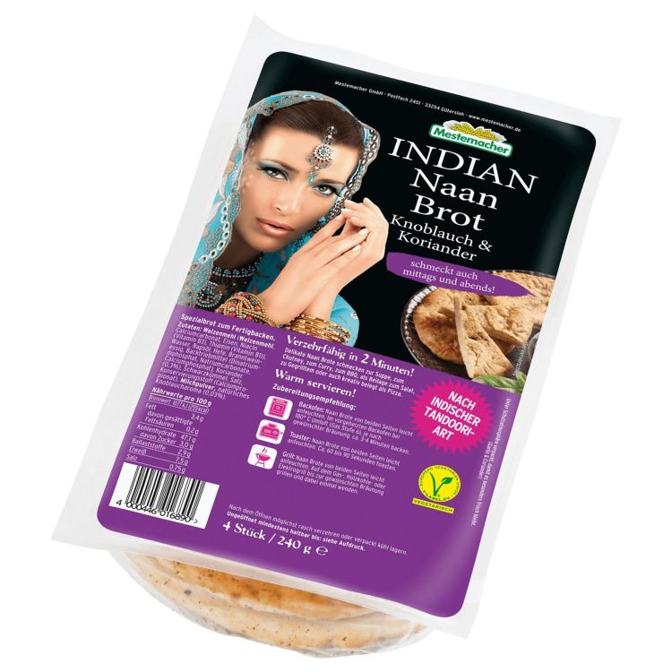 Mestemacher индийски хляб Наан с чесън и кориандър (240 г)