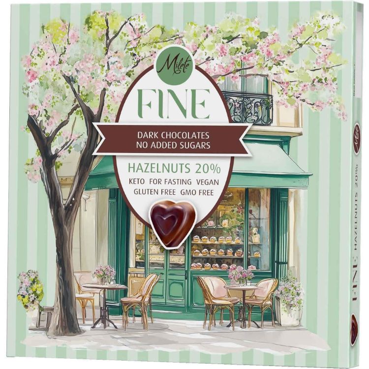 Milete FINE шоколадови бонбони с черен шоколад, малтитол и лешници, 80 г