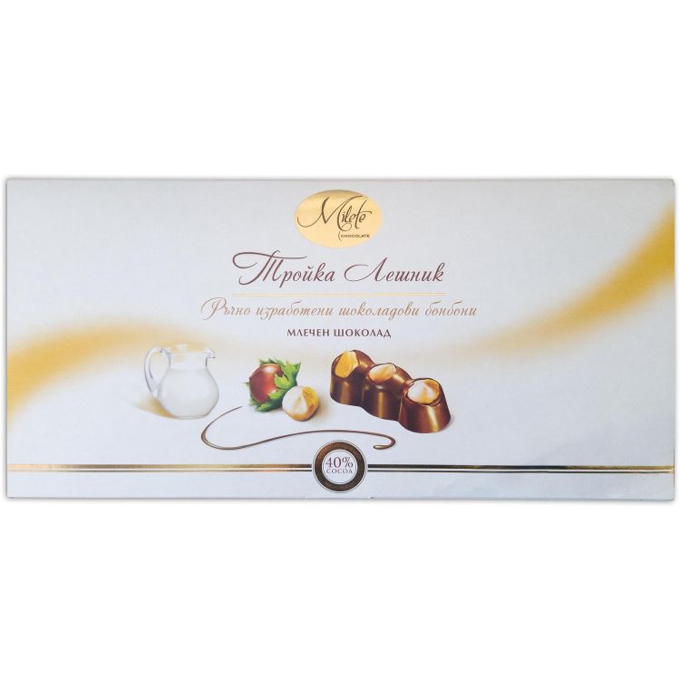 Milete ръчно изработени шоколадови бонбони Тройка Лешник с млечен шоколад, 15 бр., 155 г