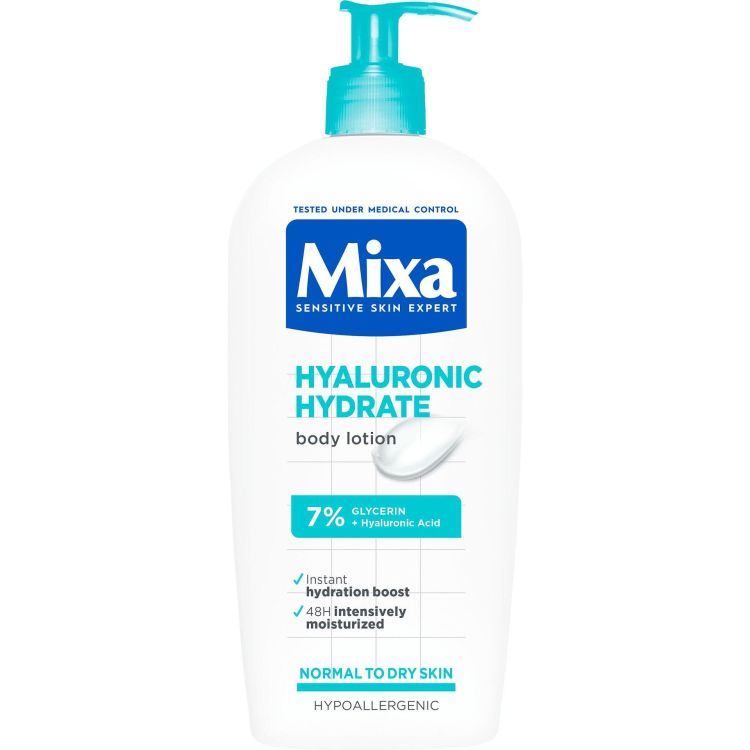 Хидратиращото мляко на Микса е разработено за специфичните нужди на сухата и чувствителна кожа, която по трудно задържа водата. Подходящо за ежедневна употреба, с успокояващ ефект при използване след депилация. Mixa Hyalurogel мляко е обогатено с хиалуронова киселина от естествен произход, която спомага за интензивна 48-часова хидратация. Кожата става видимо по-здрава, сияйна, мека и еластична. С лека текстура, която бързо се абсорбира от кожата. Хипоалергенен продукт, създаден под медицински контрол. Тестван върху чувствителна кожа.