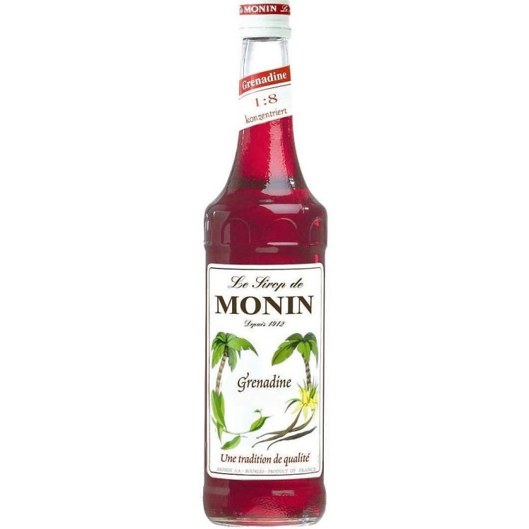 Описание: Сироп гренадин Monin (1+8 разреждане). Концентрирана напитка с интензивен червен цвят и сладък вкус на червени плодове, подходяща за коктейли, безалкохолни напитки и десерти.