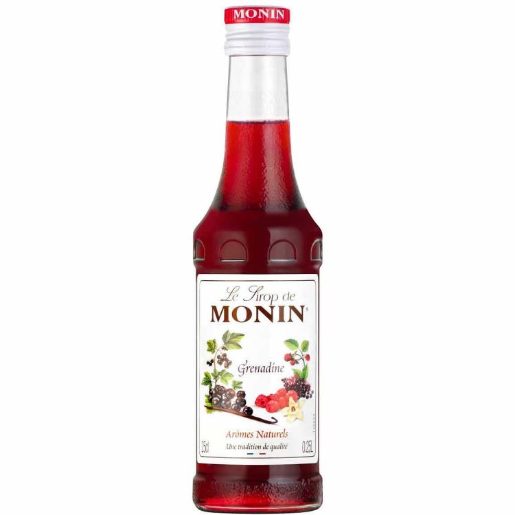 Описание: Сироп гренадин Monin (1+8 разреждане). Комбинация от вкус на ванилия и червени плодове. Подходящ за коктейли, безалкохолни напитки и десерти. Придава наситен червен цвят и сладък вкус.
