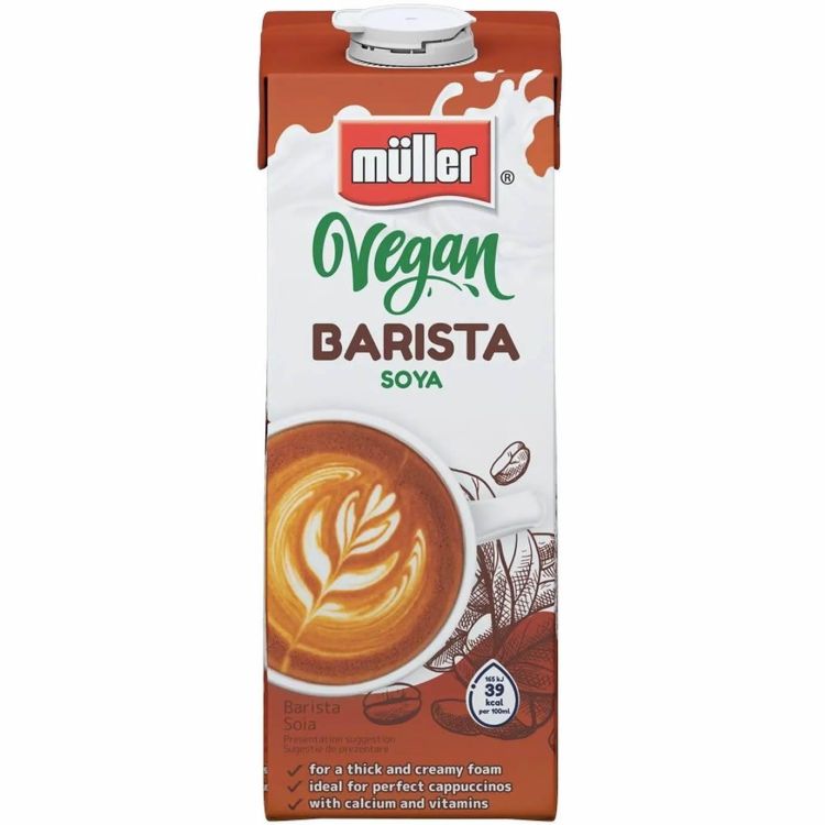 Müller Vegan соева бариста напитка е растителна напитка на основата на соя, специално разработена за приготвяне на кафе напитки. Подходяща е за разпенване и използване в еспресо, капучино и лате, като същевременно е без лактоза и обогатена с калций и витамини.