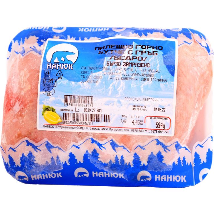 Nanuk бързо замразено горно пилешко бутче с гръб, на килограм (1 кг)