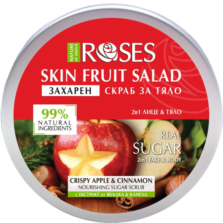 Nature of Agiva Roses захарен скраб за тяло ябълка и канела (200 мл)