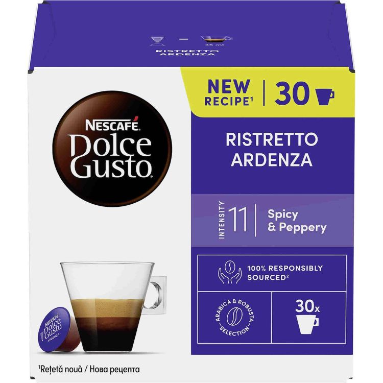 Открий NESCAFÉ® Dolce Gusto Ristretto Ardenza® - късо кафе, ристрето (35 ml), най-силното кафе в нашата колекция. Наслади се на ароматните нотки на сушени червени плодове, хвойна и на продължителния пикантен послевкус.