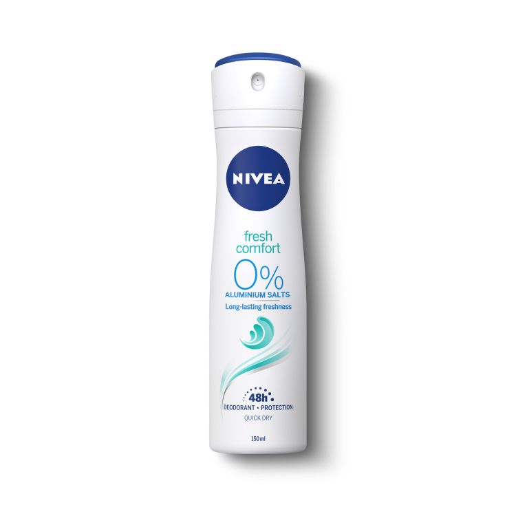 Nivea Fresh Comfort Deo Spray 48h е специално създаден дезодорант спрей против изпотяване, предназначен за ежедневна употреба, който доказано защитава от изпотяване и неприятна миризма. Иновативната му формула е богата на ценни съставки, които са известни с подхранващите си свойства. Употребата на дезодоранта осигурява оптимална защита от изпотяване и деликатно се грижи за вашата кожа, без да я изсушава. Дерматологично доказана поносимост от кожата. Продуктът не съдържа етилов алкохол и оцветители.