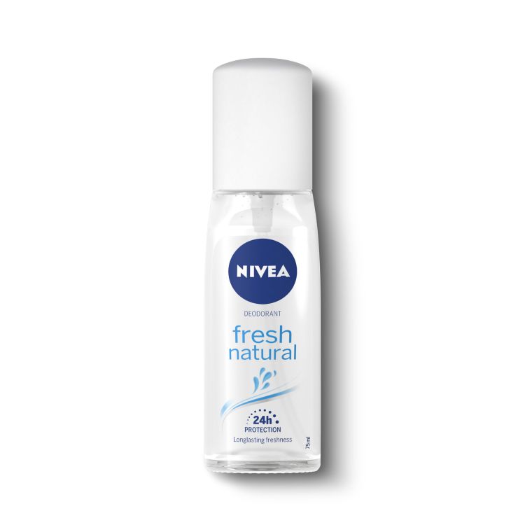 Nivea Deodorant Fresh Natural е специално създаден дезодорант спрей против изпотяване, предназначен за ежедневна употреба, който защитава от изпотяване и гарантира приятни и сухи подмишници. Иновативната формула на продукта е обогатена с морски екстаркти и осигурява допълнителна защита от потене и неприятна телесна миризма. Употребата на дезодоранта защитава от изпотяване и деликатно се грижи за вашата кожа, без да я изсушава. Дерматологично доказана поносимост от кожата. Продуктът е без алкохол и оцветители.