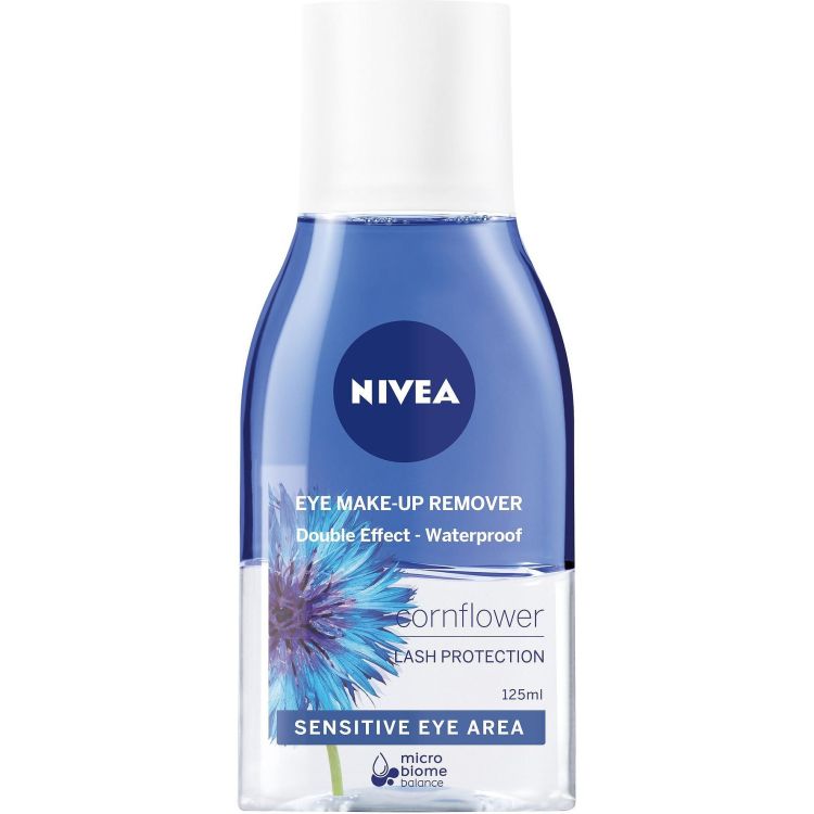 Нежно и ефективно почистване на грима с двуфазният лосион за отстраняване на грим на марката Nivea, обогатен с екстракт от метличина, който ефективно отстранява дори изключително водоустойчива спирала и грим без нужда от агресивно търкане. Защитава чувствителните мигли с подхранващата си двуфазна формула. За всеки тип кожа, срещу стареене. Подходящ за носещи контактни лещи. Не оставя мазни следи по кожата. Дерматологично и офталмологично одобрена съвместимост с кожата.
