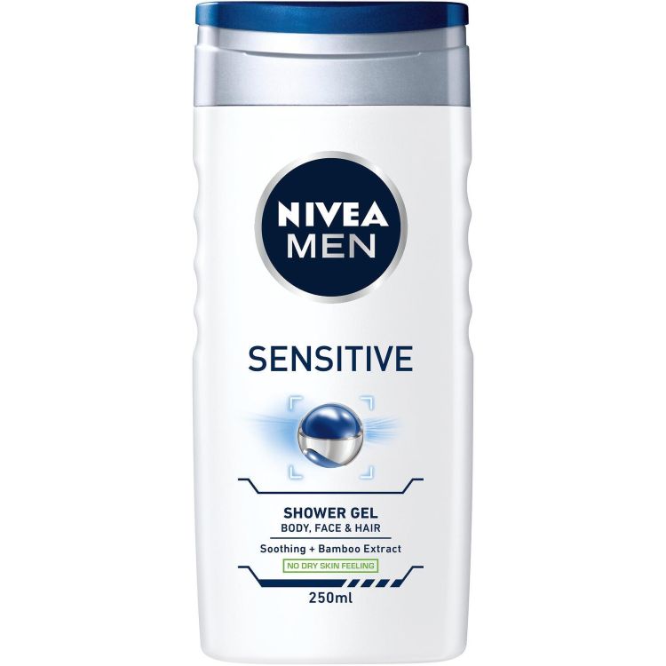 Nivea Men Sensitive Shower Gel е специално създаден душ-гел за тяло, коса и лице, предназначен за ежедневна употреба, който почиства деликатно косата и кожата. Иновативната му формула е с екстракт от бамбук, който подхранва кожата и я оставя почистена и свежа, без да я изсушава. Меката пяна на душ-гела е с мъжествен аромат, който се запазва за дълго, създавайки несравнимо чувство на свежест. Употребата на продукта осигурява дълготрайна свежест и оставя кожата и косата хидратирана и ревитализирана. Душ-гелът е с дерматологично доказана поносимост с кожата и балансирано pH.