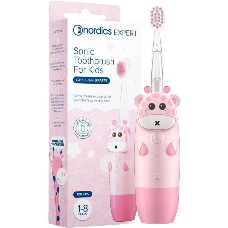 Nordics Expert детска електрическа четка за зъби, жираф, розова (1 бр.)