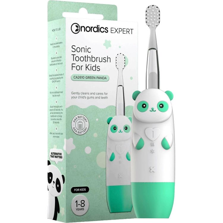Nordics Expert детска електрическа четка за зъби, панда, зелена (1 бр.)