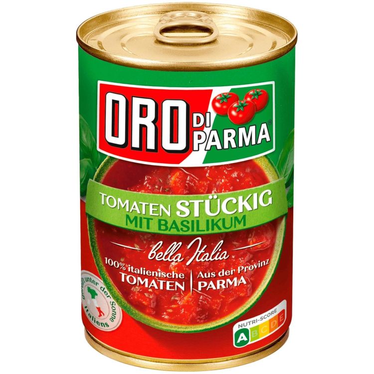 Oro Di Parma нарязани домати с босилек, 425 мл