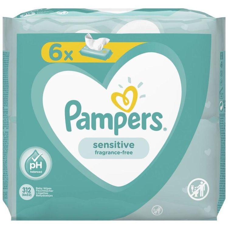 Pampers Sensitive влажни кърпички, 6 бр. х 52 бр. (312 бр.)