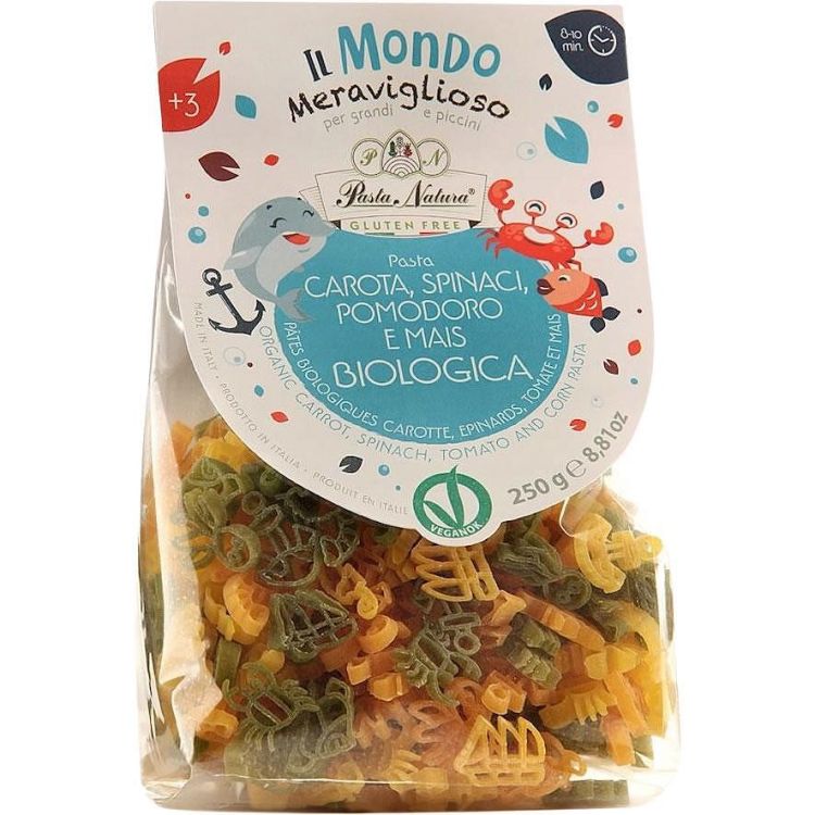 Pasta Natura био паста с моркови, спанак, домати, царевица, без глутен (250 г)