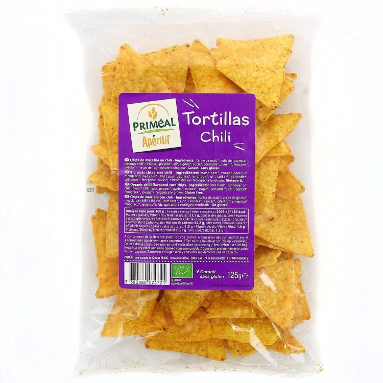 Primeal био царевичен тортила снакс с чили, без глутен (125 г)