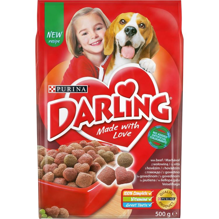 Purina се грижи за качеството на всички свои продукти и приготвя всяка храна с любов за вашето куче! Серията храни Darling са пълноценна храна за всеки ден, подходящи за всички видове породи кучета.