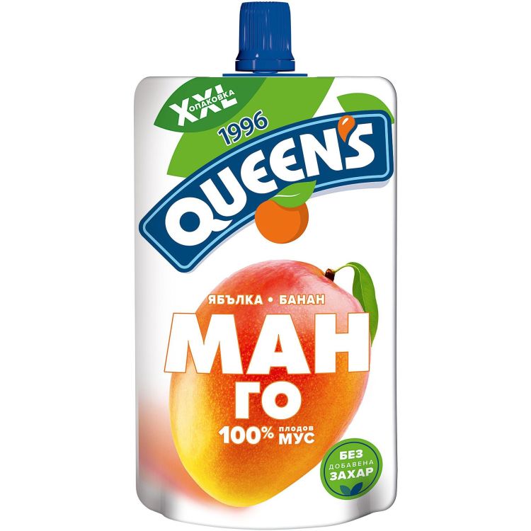 Съставки: пюре от ябълка (50%), пюре от манго от концентрат (32%), пюре от банан (9%), овесена каша (8%: вода, инстантни овесени ядки), витамин C.