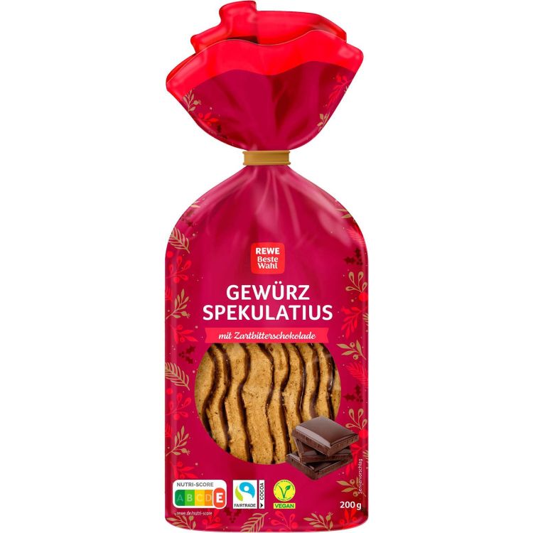 REWE Beste Wahl коледни бисквити спекулациус с черен шоколад, 200 г